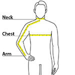 | Chest | 32-34 | 35-37 | 38-40 | 41-43 | 44-46 | 47-49 | 50-53 | 54-57 | 58-60 | 60-63 |
